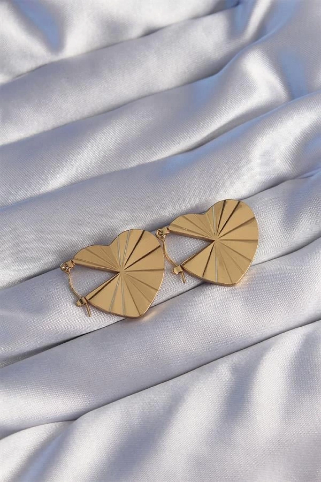 316L Çelik Gold Renk Çizgili Plaka Tasarımlı Kalp Küpe