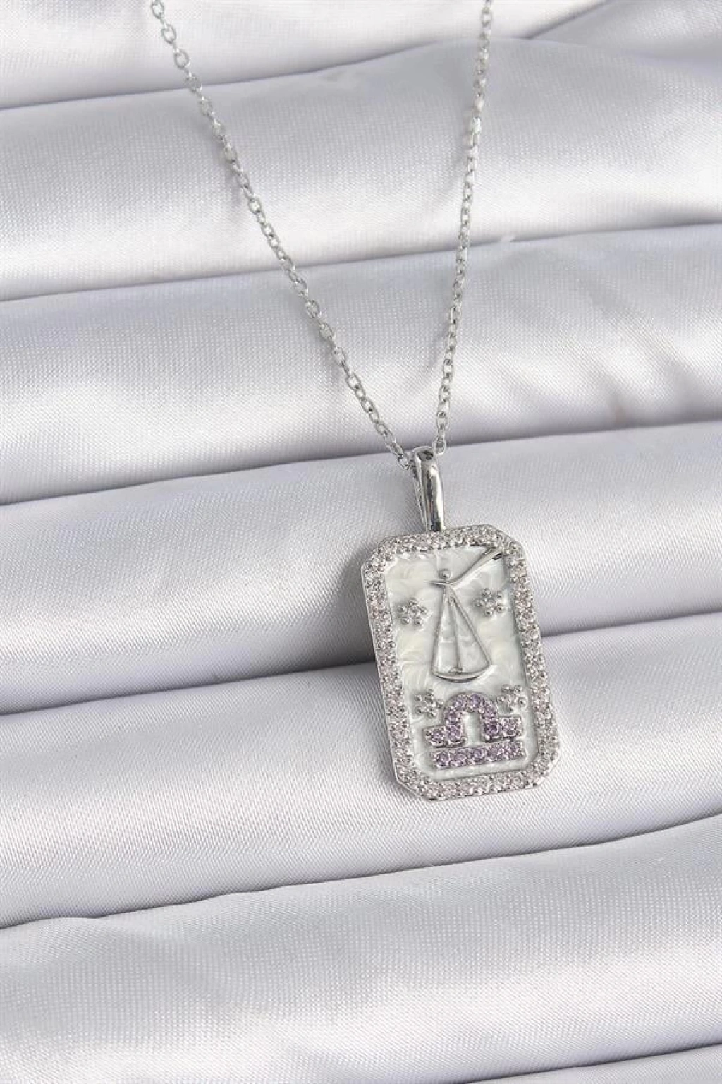 316L Çelik Gümüş Renk Terazi Burcu Zirkon Taşlı Kadın Kolye
