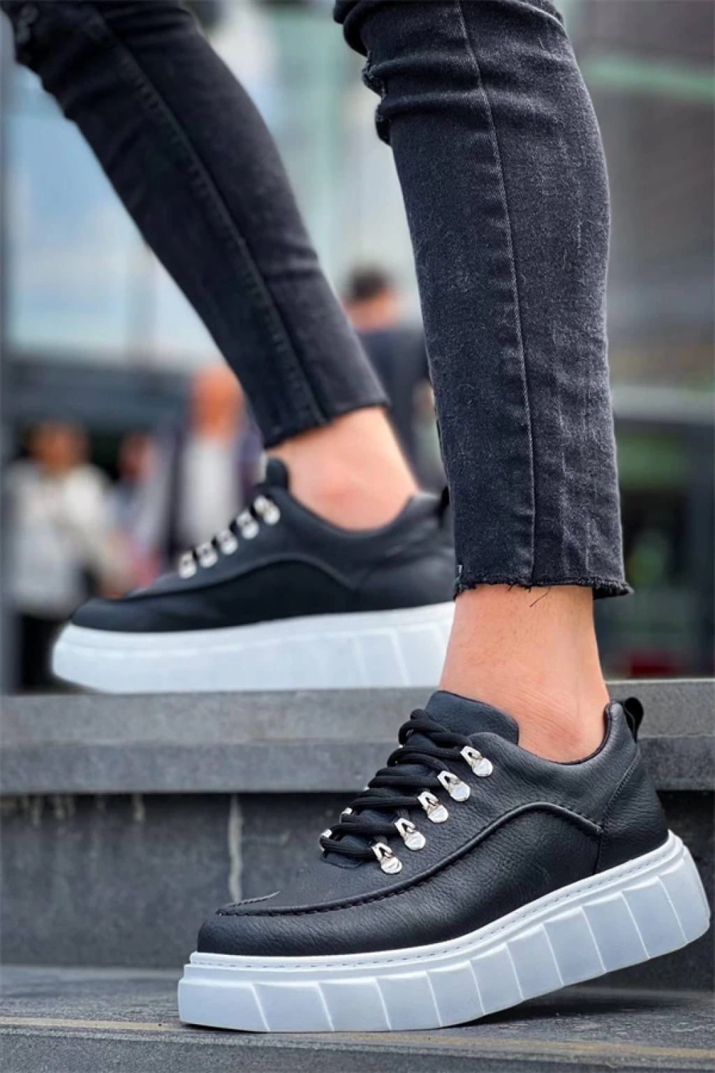 KB-X8 Kuback Beyaz Siyah Cilt Yüksek Taban Günlük Spor Ayakkabı