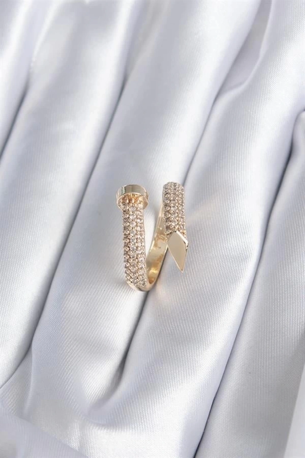 Pirinç Gold Renk Çivi Model Zirkon Taşlı Kadın Yüzük
