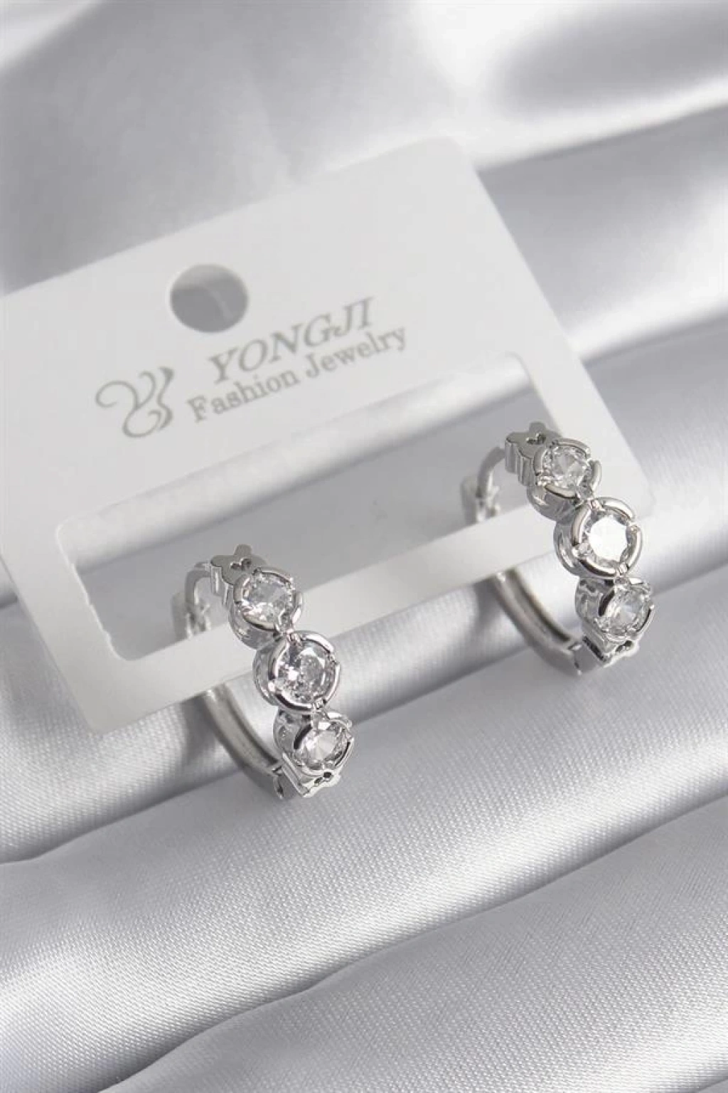 Pirinç Gold Renk Zirkon Taşlı Kalp Detay Kadın Küpe